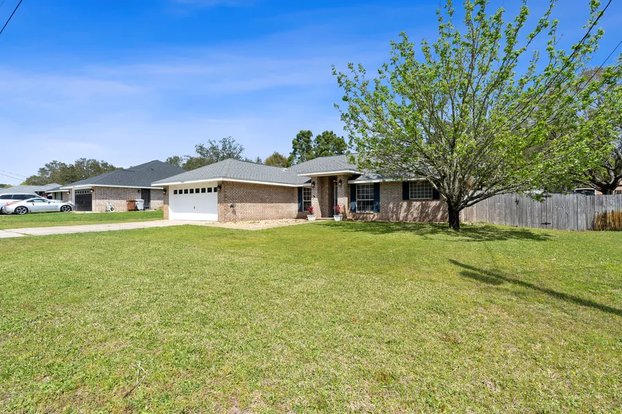 Tucked within Navarre’s sought-after Marion Manor community, this beautifully updated brick home offers a lifestyle where comfort meets coastal ease — with no HOA restrictions and no flood insurance required. Set on a spacious quarter-acre lot, the home spans over 1,890 square feet with a thoughtful split-bedroom layout designed for everyday living and effortless entertaining.