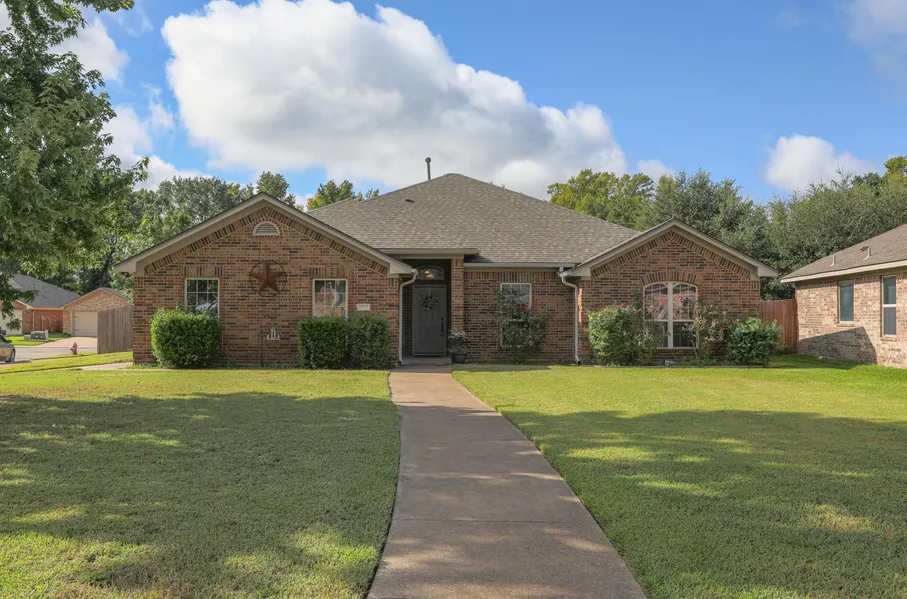 Move-in ready home on corner lot in highly sought-after neighborhood in south Tyler. Spacious split floor plan four bedroom,two bath, side-entry two car garage home has plenty of room for family. High ceilings throughout. Living room complete withwood-burning fireplace and large windows that allow for natural sunlight. Kitchen has plenty of space for entertaining andgatherings with bar and breakfast area. Extra room leading from kitchen can be used for formal dining, extra living space, orplayroom. Over-sized master bedroom has room for seating area. Master bathroom with double lavatories, jetted tub,separate shower, and his and her closets. Three extra rooms down the main hallway share a bath with double lavatories.Utility room has cabinets and room for storage. Expansive backyard and tiled back patio provide a great area to enjoybackyard barbecues!