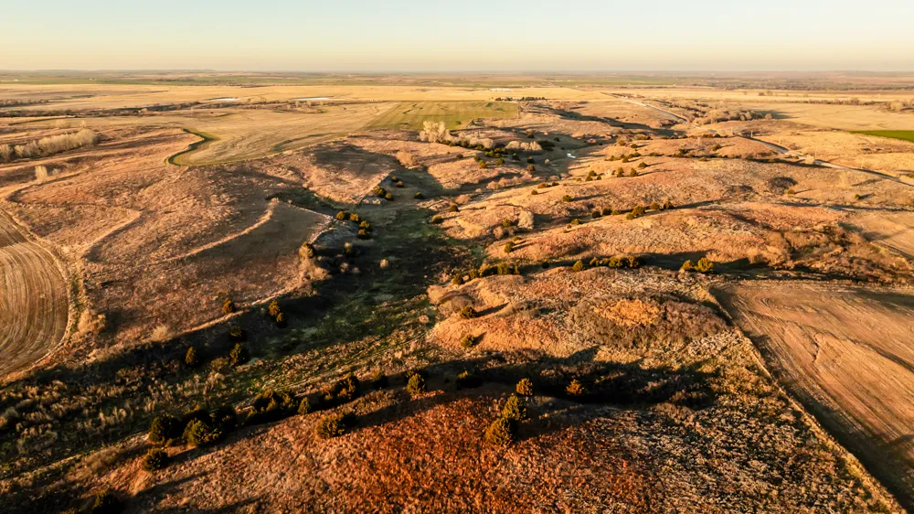Located just outside of Kiowa, Kansas, is 395+/- acres of prime hunting habitat. The farm has a mixture of everything needed to grow and harvest mature bucks, including location, size, and habitat structure. Let's start with the location, on Little Mule Creek and near the Medicine River in Unit 16. Live water in this area of Kansas means large caliber deer living and traveling through. Size: the farm’s shape and size are very unique. Two parcels make up the 395+/- acres in a shape ideal for raising big deer in a more squared shape. Added depth to the long side of the farm differs from usual layouts, which is helpful in managing your deer herd to maturity. Habitat structure: when you combine food, fresh water, and ample bedding cover, deer have no reason to leave.