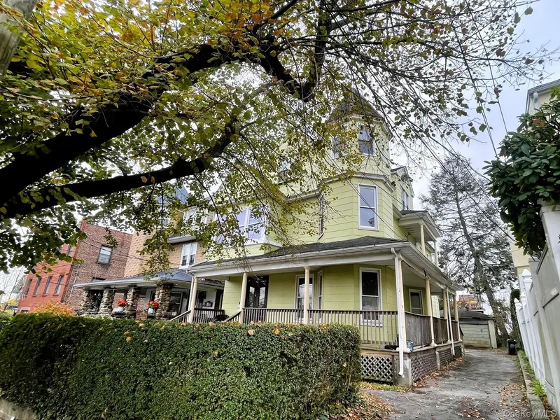 Discover the potential of this spacious pre-war Colonial-style three-family residence, ideally situated on a quiet tree-lined street in Mount Vernon. This well-maintained home features beautiful original details including natural hardwood moldings, stained glass windows, high ceilings, and decorative fireplaces that evoke timeless character. Each of the three distinct units offers functional layouts: Two generously sized 3-bedroom apartments, One 1-bedroom apartment on the top floor. The property includes a full basement, wraparound porch, and a detached two-car garage with a long private driveway-ideal for additional off-street parking. Interior highlights include: Eat-in kitchens with stainless steel appliances or traditional cabinetry, Hardwood flooring throughout, Multiple sun-filled living rooms and bedrooms, Full bathrooms with tiled walls, soaking tubs, and updated vanities. Enjoy...