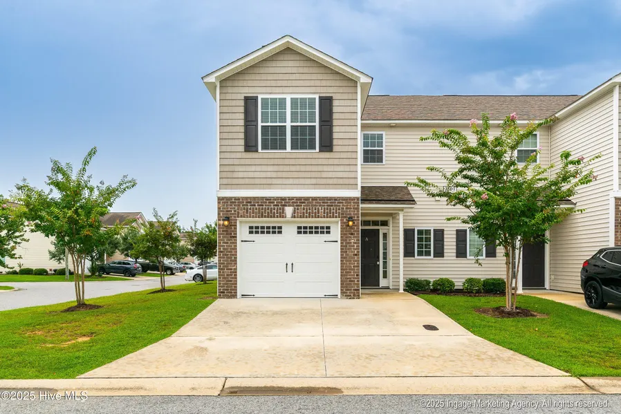Beautiful corner-lot townhome offering a open floor plan and stylish finishes throughout. A spacious kitchen with lots of cabinetry, granite countertops, stainless steel appliances. In the living room you'll find a cozy fireplace and adjoining dining area. Luxury vinyl plank flooring throughout the first floor, wainscoting in the great room, dining area, and half bath. Upstairs, the primary suite boasts a huge walk-in closet and a spa-like bathroom with a double-sink vanity, stand-up shower, and jetted tub. Two additional bedrooms, a full hall bath, and a convenient second-floor laundry room. Enjoy outdoor living on the covered back patio, complete with an exterior storage room. The single-car garage provides secure parking and extra storage space. Conveniently located near the hospital, medical district, medical and dental school, and the 264 HWY. HOA covers lawncare.