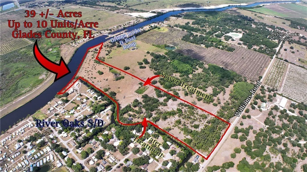 ZONED & PERMITTED RV PARK PROJECT IN ENTERPRISE/OPPORTUNITY ZONE OF GLADES COUNTY, FL. OPPORTUNITY FOR THE SAVVY INVESTOR! Fully zoned RV park project with entitlements and permitting already in place INCLUDING UTILITIES! This 39 +/- acre pristine site is nestled along the serene shores of the Caloosahatchee River, a part of the Intercoastal Waterway, in the secluded Ortona area of Glades County, Florida, with developer incentives available for your project. This tropical native site is designed and permitted for an RV park project, or, by modifying the current plan, entrepreneurs with a vision could develop "glam-tent living", tiny houses, rustic cabins, "RVominiums", protected boat storage or other possibilities! Save time and money with RV park zoning and most governmental permitting requirements already in place, with current plan for 186 units but zoned for up to 10 units per acre. The water and sewer utility, River Oaks Utilities LLC, is already in place on site and servicing an adjoining mobile home community for an immediate return on investment. The utility is part of the 39-acre purchase and provides a developer with the potential of expanding the water & sewer utilities to adjoining properties for an even more significant return. The Ortona location is situated just west of Lake Okeechobee and east of the Ortona Locks for protected water frontage, making it a haven for boating enthusiasts, fishermen, nature lovers, bike and motorcyclists, bird watchers, etc. Ortona is a central location situated in between both the east and west coasts plus offers easy access to and from Miami or Orlando, all by boat, car, or RV! The site offers stunning water views, sunrises and sunsets, and other amenities such as nature trails through moss-laden majestic oaks and peaceful ambiance. Site includes an owner's or manager's 3/2 residence. This is more than just an RV park project, it is a sanctuary for those seeking respite from the hustle and bustle of everyday life. DEVELOP YOUR DREAM RV PARK PROJECT! SEIZE THE OPPORTUNITY!