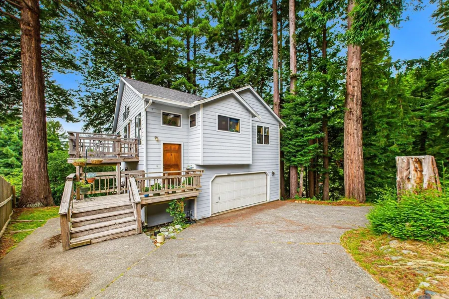 Located in one of Arcata's most desirable neighborhoods and just blocks from Cal Poly Humboldt, this versatile home is a rare find. This multi-family home is configured with an upstairs 2-bedroom, 1-bath with an open concept and panoramic views of the redwoods and peaks of the bay and ocean. Enjoy cozy winter nights by the fireplace and summer sunsets on the south facing deck. The downstairs is a spacious 1-bedroom, 1-bath with a full kitchen and private living space. Each unit has its own entry but interior doors can be configured to allow this to be a 3-bedroom 2-bath home. Brand new roof, decking and railing! PLEASE do not disturb the tenants. Park on the street.