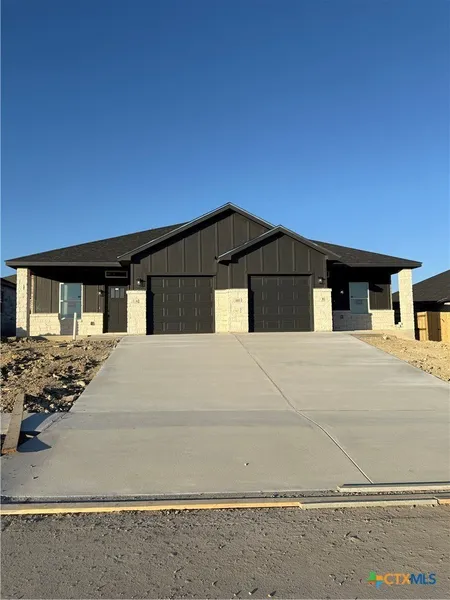 Brand new duplex in Copperas Cove with an estimated February 2026 completion! This thoughtfully designed property by G3 Builders features two spacious 3-bed, 2-bath units perfect for families, long term renters, or owner occupants looking to live on one side and rent the other. Each unit offers an open, comfortable layout with durable vinyl plank flooring, modern finishes, in unit laundry, and a private fenced backyard ideal for kids or pets. The exterior features attractive board-and-batten accents and 4 side brick for a low-maintenance construction built to last. Located in Copperas Cove just off 190 and minutes from schools, parks, shopping, and Fort Hood, this area consistently draws reliable renters and family tenants. With everything brand new and under warranty, this property offers strong appeal for both investors and anyone looking for a worry free home. A great opportunity to secure a fresh, modern duplex that works for families and investors alike.