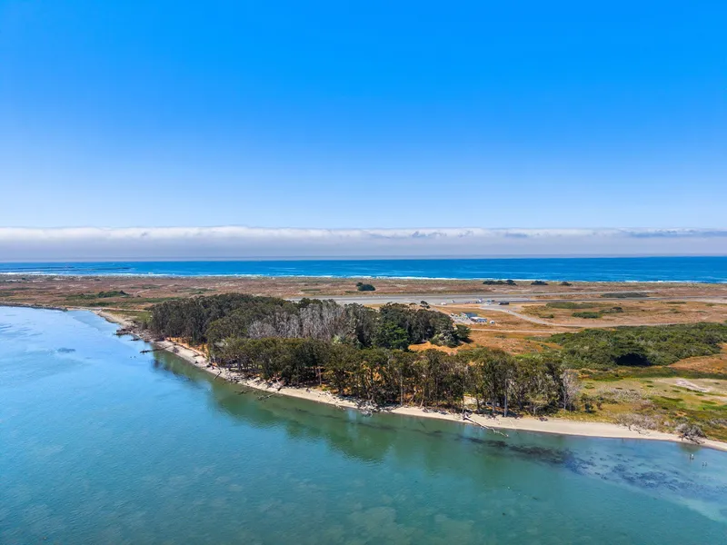 Nestled on the stunning Samoa Peninsula of Humboldt Bay, Oyster Beach is a unique +/-27-acre property that beautifully blends the charm of coastal living with sustainable design. This remarkable estate features a main house and three additional cabins, all thoughtfully constructed using reclaimed materials, showcasing a commitment to environmental stewardship while providing modern comforts. The main house serves as the heart of the property, offering an open floor plan with vaulted ceilings that invite relaxation and connection with nature. Large windows frame picturesque views of the eucalyptus trees surrounding the home. The main house is currently divided into two spacious living units but could easily be redesigned into one. The additional cabins are designed to provide a cozy retreat
