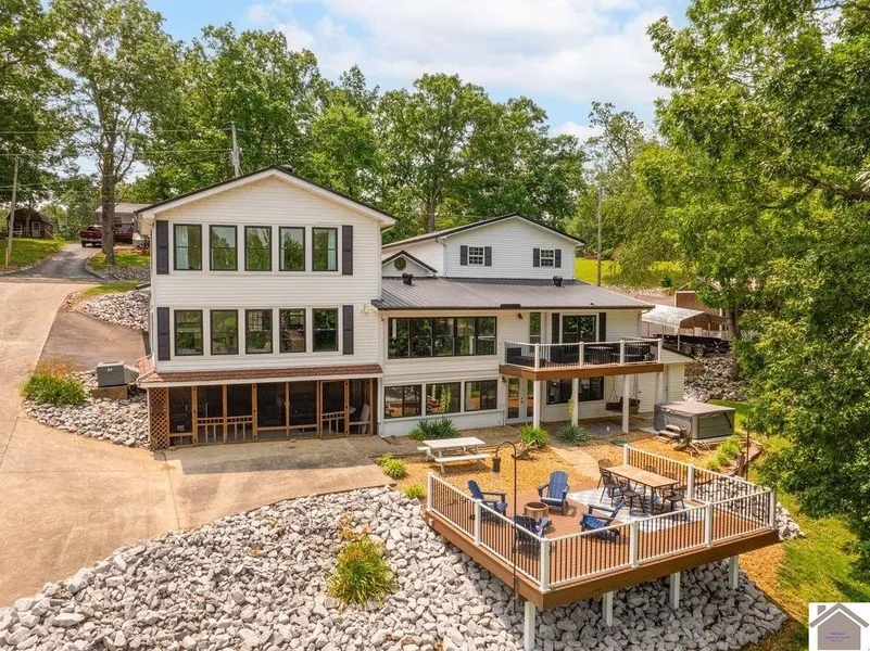 Discover lakeside living at its finest in this newly remodeled 3 bed, 3 bath retreat overlooking Kentucky Lake. The upper level features a private primary suite with lake views and an updated ensuite. The main floor has been opened up to showcase panoramic views and includes two bedrooms, a full bath, two living areas, and a brand-new kitchen with Forno designer appliances. Recent upgrades include all-new flooring, lighting, paint, electrical panels, a floor leveling system, new windows, and a smart lock entry. The walkout basement offers a second kitchen with new counters, backsplash, and hood, plus access to a screened-in porch. Outside, enjoy a new hot tub, lower deck, and a private dock with private ramp. Sold furnished. Just 10 minutes by golf cart or boat to Moors Marina for dining and entertainment! HSA Sellers Home Warranty is included!