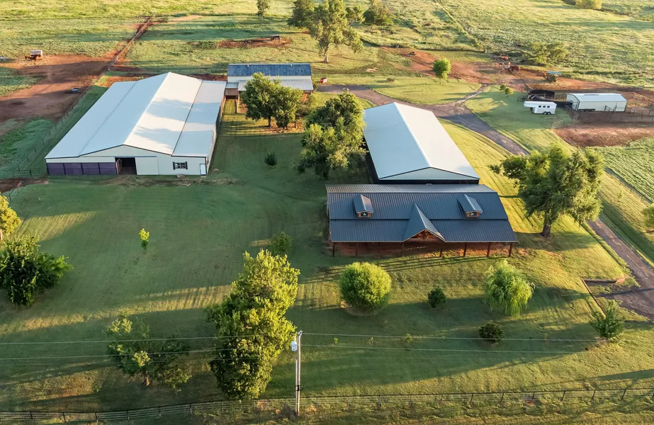 Turn-key equine and livestock facility on 18 acres has huge commercial potential and is located only 30 minutes from the OKC Metro. Designed and built by a breeder of World & Congress Champion sires, the steel-framed buildings and thousands of feet of pipe & cable fencing offer a perfect set-up to operate a thriving business with unlimited opportunity.
