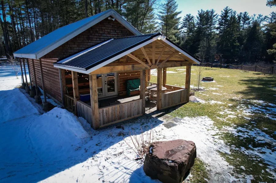 RARE FIND Tug Hill Paradise with income potential!!! This private getaway is an exceptional discovery and one that should not be overlooked. With expansive acreage that could be subdivided, a winsome chalet-style cabin on the edges of the West Branch of Fish Creek and income potential — this site checks A LOT of boxes! Five combined lots join to form a recreational paradise in an area known for exceptional hunting, fishing, snowmobiling, ATV riding and an overall attitude that leans toward outdoor activity. However, there’s so much more!!! What makes this property so unique is the working sand and gravel mine that offers income potential to those willing to continue its use. Real estate agents are often asked, “how can I find a property that will help pay for itself”? This rare find may present the answer to that burning question. Nestled on a private gravel road in a sun-drenched opening within peering view of the West Branch of Fish Creek is a nearly-finished cabin complete with kitchen, bathroom, loft and all the creature comforts to make this a home away from home or cozy primary residence. This off-grid cabin features a generous footprint with an open concept where the flowing living space drifts from one room to the other, mirroring the attitude of the adjacent creek’s gentle waters. With access to a generator and propane — “off grid” doesn’t equal uncomfortable. A full bathroom details a standup shower with glass doors and fully-functional modern finishes. Upstairs is a spacious, full-height loft and catwalk overlooking the open living area below and large enough to fit furnishings and king-sized bed. The spacious great room features vaulted ceilings, ceiling fans, hookups for gas lamps and a gas stove. Transitioning outside, a recently constructed covered porch with a blue stone floor adds to the ambiance while offering up a place to enjoy the enchantment of the surrounding forest. An additional foundation has also been constructed on the premises, leaving way for the opportunity to build a larger home or cabin in the woods to stand stately while giving additional room for guests. A well designed and constructed stairway creates easy access to the tannin-stained, trout-stocked waters of the West Branch of Fish Creek and makes for a great spot to enjoy quiet hours by the water’s edge. The surrounding forested setting is comprised of a typical Northwoods blend of maple, ash, beech and various conifer trees that offer great hunting and recreation among the stand. Area snowmobile trails are just a stone’s through from the cabin, and pass along the seasonal Lover’s Lane Road as soon as enough of the white stuff flies. Those who seek to find solitude amongst nature will appreciate the serene personality of this land while enjoying the potential benefits of its cash-producing resource. Two of the five lots include improved driveways that stem from the main access road offering a great opportunity for future development of other camp/cabin sites or the ability to subdivide. Permitted for up to 18 acres, the currently-operating sand and gravel mine is utilizing a small footprint of just four acres, giving it plenty of opportunity to scale and provide long-term income. The mine is state-permitted and approved, bonded and providing positive cashflow via its multiple-year lease and supply of extracted sand and gravel material. Easily accessed seasonally from Lovers Lane Rd or year-round from Base Bridge, this private and secluded location is one that yearns to be explored and enjoyed. Contact us today to see for yourself why this piece of paradise is so special in so many ways. Contact us today to learn more about this diamond in the rough opportunity ready for an enterprising new owner.