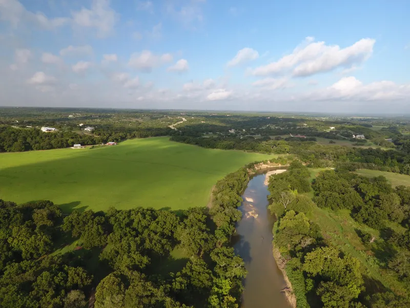 Access to the river bottom are is accomplished with a rock road, with many large shade trees overhead. Once at the bottom of the hill, one will immediately notice the lush, and well-maintained hay field. This hay field comprises approximately 8 acres of the property, and extends into several neighboring tracts. This hay field is managed by a neighbor, and is utilized to qualify this property the highly sought-after AG EXEMPTION, without the hassle of having to cut and bale the hay yourself!
