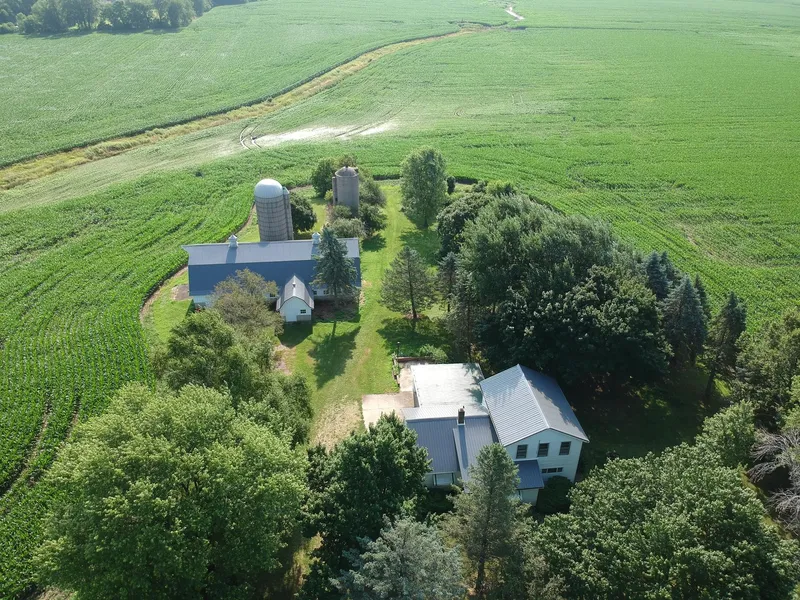 Awesome 2.8 acre parcel on the outskirts of Darien. Large farmhouse with two outbuildings, including an old Dairy Barn which has been recently re-sided & re-roofed with a metal roof. Home has an attached 2 car garage, full basement and four bedrooms & a metal roof. Recent improvements include new kitchen flooring and a new bath. Beautiful setting with easy access to Highway 14 and Interstate 43.