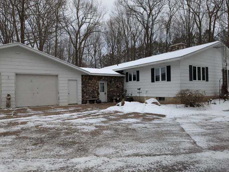 This property checks a lot of boxes! Cemented pole shed, oversized attached 2-car garage, tons of storage, wildlife, hot tub, basement bar, and over 19 acres with a pond! Easy drive to town but definitely in the country. You can warm up from the newer wood furnace or enjoy the heat from the wood burning fieldstone fireplace. Enjoy the evening soaking in your hot tub watching the wildlife. Owner states that deer are numerous, in fact one of the large bucks on the wall was taken in the woods. Don't miss out on this one