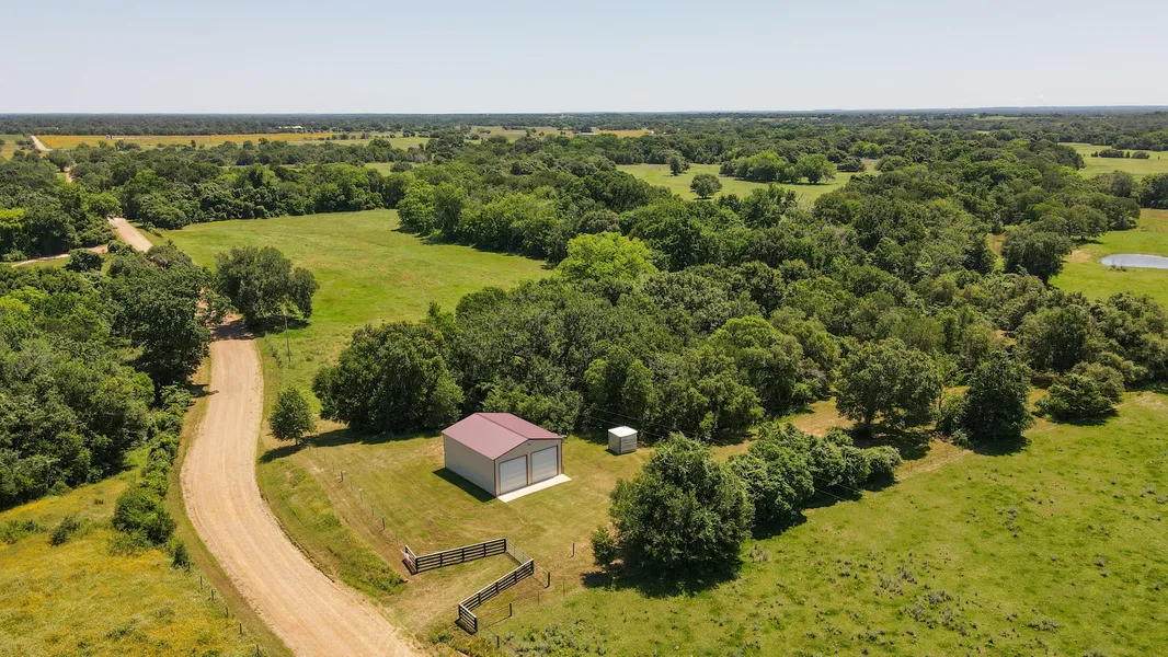 Recreational Country Get-A-Way. Bring your ATV and Camper and enjoy 10.41 acres overlooking Nails Creek. This property is bordered on two sides by Nails Creek and 8.76 acres of this property is in the 100 years floodplain. The remaining 1.65 acres are high and dry and already has electricity, a water well, and a 30 X 35 metal barn with concrete floor, with three 12 X 12 roll up doors for your boat and ATV storage. There is plenty of space to build a cabin near the 20 X 20 deck that overlooks Nails Creek. The trees and pasture are lush and beautiful. Plenty of exploring to do around the creek. Ag exempt. Just 9.4 miles from the Nails Creek Unit and 23 miles from the Birch Creek Unit at Lake Somerville. Lake Somerville amenities include boating, fishing, hiking, biking, equestrian trails, birding, camping and much more. 11 miles from Giddings, 31 miles from Brenham, 47 miles from College Station, and 93 miles from Houston.