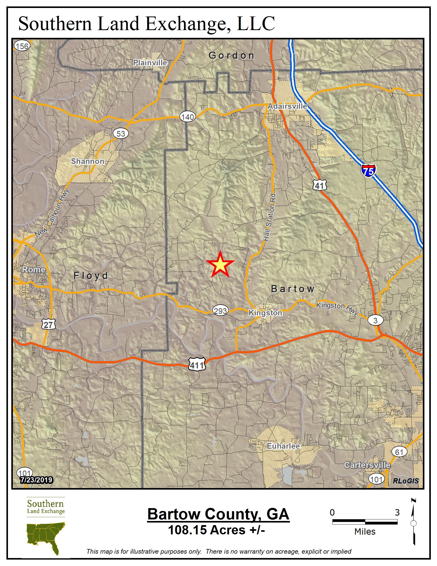 Conveniently located in north central Bartow County this easy to access 247.7 +/- acre tract is just 3/10 mile north of GA HWY 140 on Nally Road. From I-75 and Adairsville, Ga., go east, 9 miles, on HWY 140. It is also 4 miles west of US HWY 411 in the Pine Log community. Sold as a whole, this property is a wonderful recreational/investment opportunity.Located 9 miles east I-75 this well managed tract of land offers hunting opportunities as well as residential possibilities. With 6,000 feet +/- of frontage on Nally Road, this tract offers the buyer multiple opportunities to subdivide and market additional tracts as well as manage timber and is ideal for pasture conversion. There is also 2,100 feet +/- of Little Pine Log Creek frontage. This multiple use tract can be your country home just out of the city.