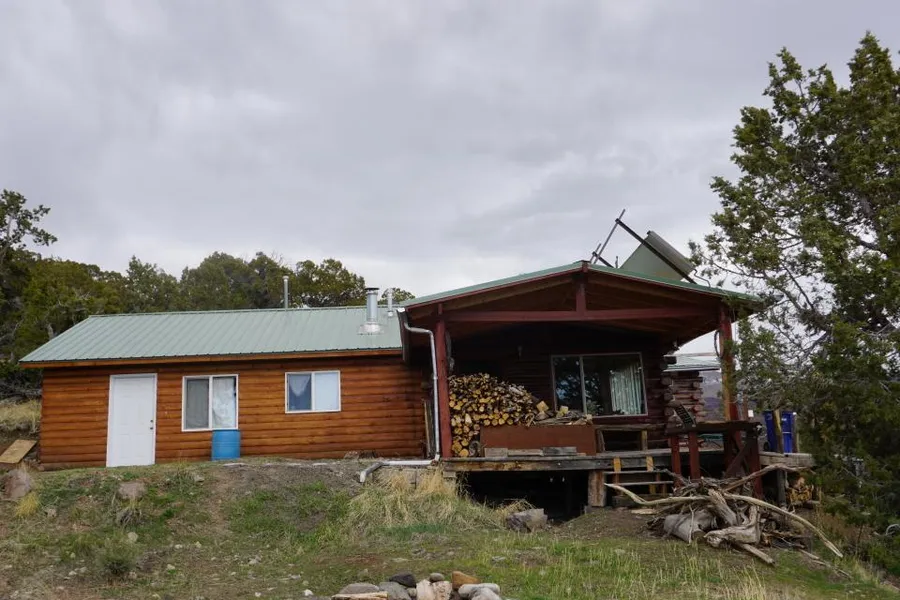 Appealing home near Crawford with splendid mountain and valley views and perched on a wooded hillside eev. 7520 ft. The house is at present two adjoing 1 bedroom/1 bath units each with its own entrance, but cold be converted back to a single family. Extensively remodeled and updated in the last few years. The main house features sturdy log construction with huge picture windows to take in the scenery, an open floor plan, southern exposusre, a large covered front porch, a wraparound deck overlooking the Clear Fork Valley and a stairway down to a cliffside meditation/yoga platform. The apartment also has an open plan and is energy-efficient with 0 inch thick insulated block walls. You need a sturdy AWS or 4WD vehicle to drive the steep bumpy road to this very secluded property. It is entirely off-grid and uses a redundant propane, solar and wood system for heat and power.