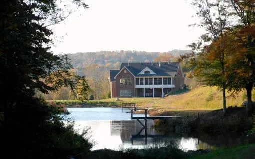 The main house is an elegant contemporary 2 story brick home with a panoramic view of the pond and hollows. Detached 2 car garage with pedestrian door and abundant storage on the lower level is accessed by outside steps and door. The property boasts a 40x50 Pole Barn and work shop and an additional four stall equipment shed for tractors, mowers or ATV's.