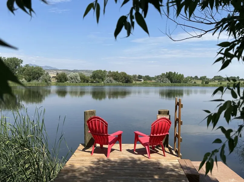 Welcome to 4514 Hoot Owl Dr, nestled along the tranquil shores of a private lake, this extraordinary property offers a unique blend of country charm & city convenience, all against the stunning backdrop of the Front Range. With unparalleled views in every direction, this custom-built 2-story home is a true to luxury living. Step inside to discover a world of elegance, with exposed beams & wood flooring adding warmth & character to the spacious interiors. The master bedroom suite featuring a gas fireplace, ensuite bath w/ a soaker tub surrounded by Italian marble, providing a serene retreat w/ breathtaking views of Long's Peak. Two additional bedrooms, with private baths, offer comfort & privacy for family & guests. The custom kitchen is a chef's dream, boasts a large breakfast bar adorned with granite cut like rose petals, perfect for casual dining or entertaining. Entertainment options abound with a Finlandia sauna, sunroom, game room, & an upstairs open fun room (could be a bunk room/movie room), providing ample space for leisure & relaxation. Custom-built cabinets throughout the home offer stylish storage solutions, while outside, a barn with a covered area & workshop provides additional space for hobbies/ storage. The outdoor amenities are equally impressive, with a private dock for fishing or kayakingor bring your pontoon for sunset cruises. three covered decks, & two patios offering stunning views of the surrounding landscape. A saltwater heated swimming pool with a diving board & automatic retractable cover, a hot tub on the lower covered redwood deck, provide year-round comfort and relaxation. Surrounded by extensive trees & flower beds irrigated by the property's own lake water, the outdoor spaces are an oasis of tranquility. For the perfect end to each day, retreat to the gazebo and watch the sunset over Long's Peak, a breathtaking spectacle that epitomizes the beauty of this exceptional property. Don't miss the opportunity to make this exquisite lakefront retreat your own. Schedule a private showing today & experience the unparalleled luxury & natural beauty of this one-of-a-kind property.