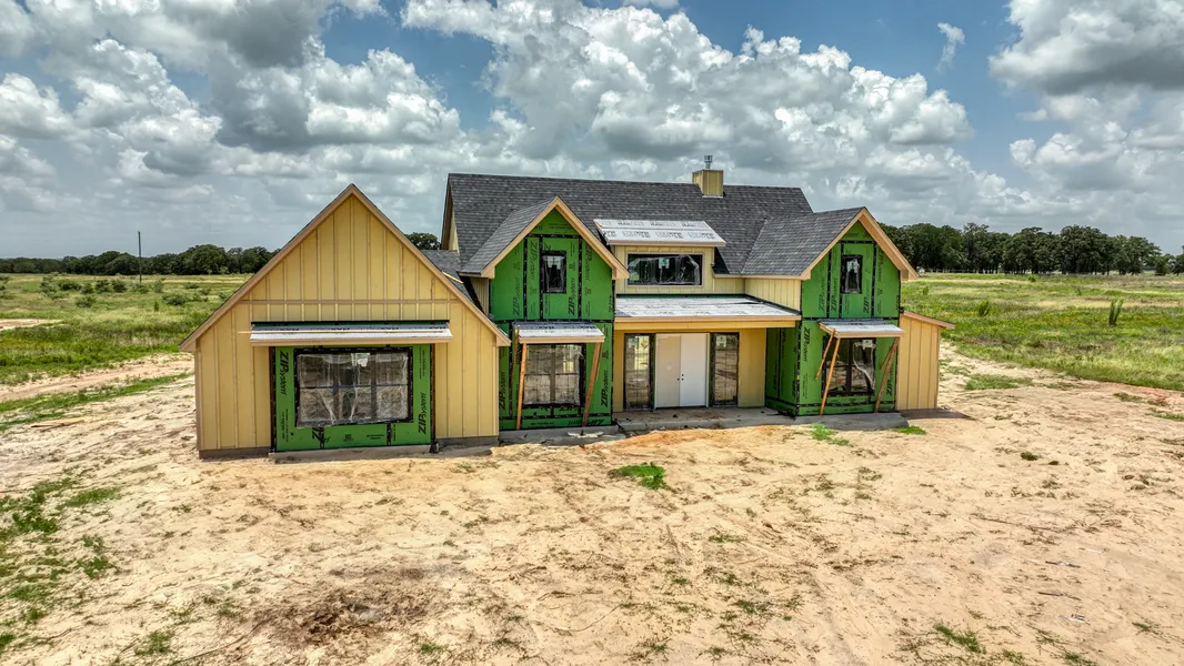 Discover your dream Texas retreat with this stunning property offering breathtaking front porch views of Comanche Peak. Nestled among neighboring ranches and rural estates, this home combines tranquility with thoughtful design & modern amenities. Inside, you'll find a spacious, well-crafted layout featuring four generous bedrooms, three full bathrooms, & a convenient half bath. The vaulted living area is a true highlight, complete with a cozy gas fireplace, wood-look tile flooring throughout, & large windows that bring in abundant natural light while showcasing picturesque views of the rear porch—perfect for seamless indoor-outdoor entertaining. The gourmet kitchen is a chef’s delight, equipped with a large center island ideal for casual dining, quartz countertops, & premium GE Café appliances—including double ovens & a gas cooktop. An expansive pantry provides ample storage, with space for a beverage cooler or full-sized refrigerator to meet all your culinary needs. Energy efficiency & modern comfort are prioritized with foam insulation throughout the home, ensuring optimal temperature regulation & lower utility costs. Privacy is maintained with a split-bedroom design, each bedroom featuring walk-in closets for ample storage. Two bedrooms share a convenient Jack & Jill bathroom, while the fourth bedroom boasts its own ensuite for added comfort. The luxurious master suite serves as a personal sanctuary, complete with a spa-like master bath featuring dual sinks, a soaking tub, & a walk-in shower. Enjoy the benefits of NO water bill & NO city taxes! Located just 10 minutes from the marina & only 15 minutes from the vibrant historic Granbury Square—famous for its dining, shopping, wineries, & live music—this home offers the perfect balance of peaceful rural living & convenient amenities. Estimated completion end Aug early Sept. Don’t miss this opportunity to turn your dream home into reality. Txt ZEAL25 to 88000 for builder details & more.