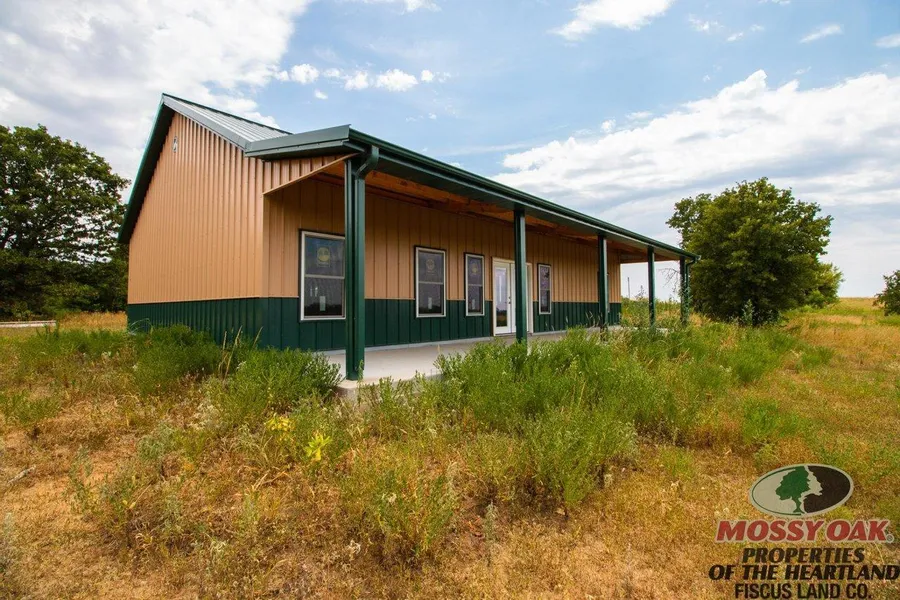 The home is a Morton Building and has all of the framing complete along with the rough in plumbing. The layout of the 1728 Sq. Ft. home has an open living, kitchen and dining. 2 bedrooms, a large mudroom, and an office pack a lot into this square footage. Each bedroom has its own bathroom, in the master the plans call for a walk in shower, his and hers sinks, and a soaking tub. An extra feature is the walk in closet being a concrete safe room, this added sense of security is invaluable in this part of the country. The large porch overlooks the hills to the west and will probably have some of the best sunsets you'll see. The shop has two overhead doors, electricity and water. There is a small finished room for a place to stay while the home is being completed. The shop has a bathroom, and is ready for a shower to be installed. There is also a pre-fab building that goes with the property.