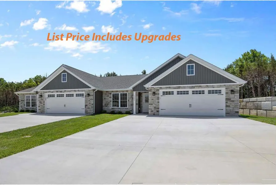 Open floor plan with a large living room and vaulted ceiling. In addition, you'll find custom cabinets and granite countertops, main floor laundry, master bedroom suite with double sinks, a huge walk-in closet, 2-car garage (22x22), and a covered patio that backs up to woods. This natural setting is very peaceful and quiet. This list price includes upgrades.