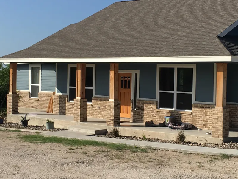 Beautiful and peaceful country living. New construction on 9 acres. Featuring 3 bedrooms, 2 1/2 baths, 2 car garage, additional study/den, custom cabinets, granite countertops, custom stained flooring, brick/siding, stainless appliances, central AC/heat, master suite featuring his/her walk in closets, 9 green acres. 5 miles west of Kenedy, TX.