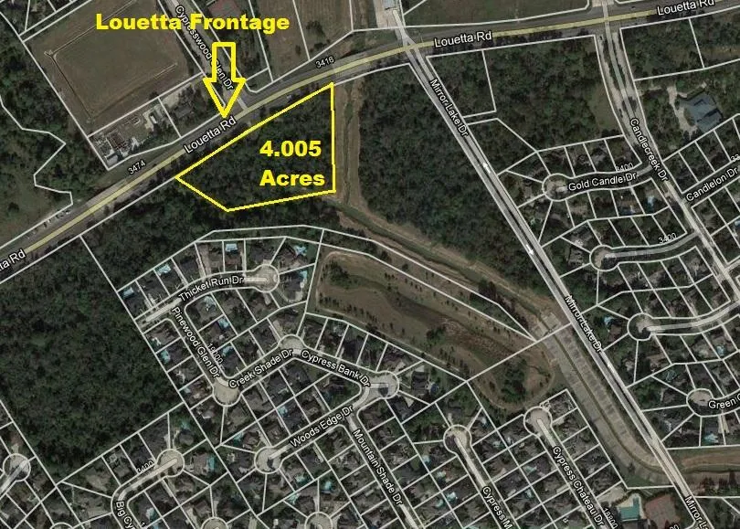 New Price! Great Price For Great Location! Great Investment for this 4+ Acre Tract w/~700 ft of Louetta Road Frontage. Seals Gully runs along west border. Close to I-45, Beltway 8 & Hwy 249 provide quick commute to downtown Houston. Surrounded by residential properties makes this prime location for a Church, Multifamily, Business or Commercial Development. Must check this area out, its growing with Commercial Development. The 6.024-acre parcel is for sale separately under Listing #1165460 or together under Listing #1187330. New Survey in Docs!