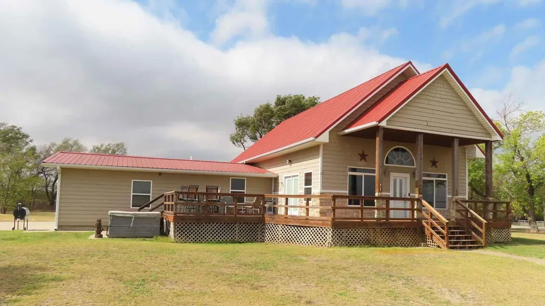 UNDER CONTRACT: Now listed at $499,000.00 Location, Location, Location! Properties like this are difficult to find! Located just 2 miles from town on a paved road, this one checks all the boxes. The 44 acre tract features a 2,016 sq ft home that was built in 2010 with 2+ bedrooms, 2 baths and a large loft area. Be prepared to entertain in this home, the great room has 17-ft vaulted ceilings, open kitchen with bar top seating, a large porch, a hot tub and a fire pit. Inside you will appreciate the hickory floors, stainless steel appliances, a primary bedroom with a private bath and walk in closet, rural water, pellet stove, an attached 2 car garage and a full unfinished basement. Outside you have a ton of options starting with a 60x40 metal building with concrete floors, electricity, water and a stove for heat plus a couple of other older outbuildings. If you want livestock or horses, there are older pipe pens, a loafing shed with water, and an approx. 31 acre native and mixed grass pasture with a pond. With so many opportunities, paved road access and 2 miles from town, you might wait a lifetime to find a set up like this again.