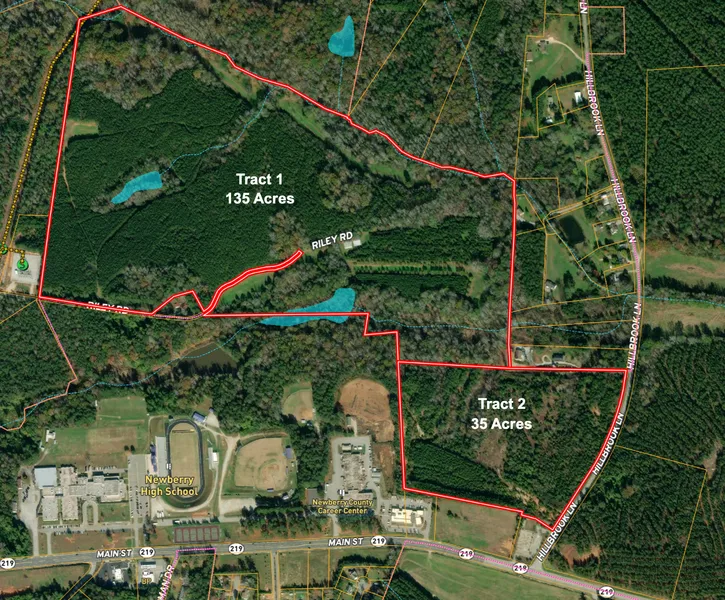 The Newberry Investment Tract consists of 135 acres of undeveloped land in the heart of Newberry, SC. Located directly behind Newberry Highschool and under one minute from the town’s retail & commercial center, this large parcel sits clearly in the path of future development. Access is currently off Riley Rd, which can be accessed from Heritage Dr. A survey is available for review and additional acreage is available, which could provide another access point from Hillbrook Ln.