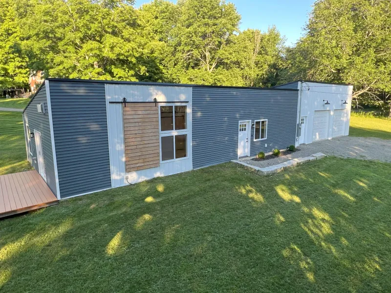 The modern exterior design of this newly constructed home has an interior that is equally as impressive ! This professionally designed all on one floor 3 bedroom 2 bath newly constructed home is highly energy efficient and modern in every way. The high end finishings, custom tile work throughout, granite counters, and top quality vinyl flooring make life easy for you and your roomba. The kitchen, with an impressive island and roomy pantry, is well suited with all new stainless steel appliances, one of which is a gas range, for those who know and appreciate the pleasure of cooking with gas. The master suite with its walk-in closet provides plenty of space and quiet privacy. The black slate propane fireplace, located in the living room in this open concept spacious vaulted ceiling home, is a great backup heat source and sets the mood on chilly nights as well. Patio doors from the living room enter an oversized private backyard deck and fire pit, a great place to make memories in the spring, summer and fall. The well landscaped property has ample areas if you're into gardening...maybe some raised beds for some of your own home grown veggies. Central Heat and Air Conditioning are provided by a state of the art highly efficient air source heat pump ducted system. The oversized two car attached garage is heated, is great for storage, and contains the laundry room, which in turn creates more usable space in the home. The private rural setting is only about 20 minutes to Bangor and a bit over that to Belfast. Schedule your showing today