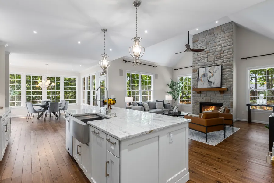 Introducing a rare opportunity to own a newly — and completely — renovated estate home in the prestigious Chattahoochee River Club, one of metro Atlanta's most desirable swim/tennis communities along the Chattahoochee River. Accessed via a graceful winding and landscaped driveway, this elegant five-bedroom, three-and-half-bath home has been re-imagined and meticulously curated. Designed for sophisticated modern living and privacy, this one-of-a-kind entertainer's home abounds with high-end, designer features. Highlights include: a large new chef's kitchen with custom white cabinetry, all-new JennAir appliances; a butler's pantry; a luxurious new primary suite with spa-inspired bath; gleaming new hardwoods and custom millwork throughout; formal dining room; a spacious office; a remodeled terrace level with guest suite; Lutron Caseta programmable lighting system; professional-grade, closed-circuit television security system; new Carrier HVAC systems; a new roof and gutters; and landscaped, irrigated grounds. Once inside this home's beveled-glass French front doors, one is welcomed by a two-story entry hall with custom chandelier, fanlight window and gleaming, new hardwood floors. Across from an elegant formal dining room with wainscoting, is a spacious office with a coffered ceiling. This home continues to delight as one enters the stunning new chef's kitchen featuring light granite countertops, an over-sized island and luxurious lighting. Furniture-grade cabinetry with integrated custom lighting and elegant tile complement the brand-new JennAir stainless appliances — including a large gas cooktop with architectural vent hood. Adjacent is the separate butler's pantry, featuring custom cabinetry, a sink, wine chiller and sunny window. Seamlessly flowing from the kitchen is a spacious, sunlight-filled breakfast room — accented with a custom chandelier, three walls of windows and access to a charming deck. The heart of this home is the large, but cozy, fireside great room — designed for elegant entertaining and relaxation. Adjacent to the kitchen and breakfast room, the great room features large, bright windows, soaring ceilings and a stacked-stone gas fireplace. Just outside is a private deck, overlooking the manicured backyard with mature shade trees and lush plantings — accented by landscape lighting and irrigation systems. On the second level, one finds the large, luxurious primary suite -- a private retreat with a spa-inspired bath, light granite dual vanities, soaking tub, frameless rainfall shower, imported tile, programmable custom lighting, and a large closet room with built-ins and a window. Steps from this king-sized primary bedroom suite is an elevated screened porch — offering the perfect respite to savor morning coffee while overlooking the wooded grounds. Three spacious additional bedrooms, and a full bath, complete this level — which also features new hardwood floors. The renovated terrace level features a guest bedroom suite with bath and rainfall shower, imported Porcelanosa tile floors, granite counters, multiple windows, programmable lighting, a refrigerator, a spacious laundry room with a new washer and dryer, and a mudroom with custom cabinetry — along with exterior walk-out access to a shaded flagstone patio. The two-car garage features storage and multiple windows, and is accessible from a large — and level — upper driveway with parking/turn-around space for multiple vehicles. This elegant custom home -- built by renowned builder, Hedgewood Homes -- enjoys a coveted cul-de-sac location with access to forested walking paths, stocked neighborhood lakes, and the community's award-winning lifestyle amenities -- including hiking trails, a luxurious clubhouse, resort-style pools, tennis courts, playgrounds and vibrant social clubs. Additionally, the community is served by top-ranked schools, and is close to Lake Lanier and popular shopping and dining destinations.