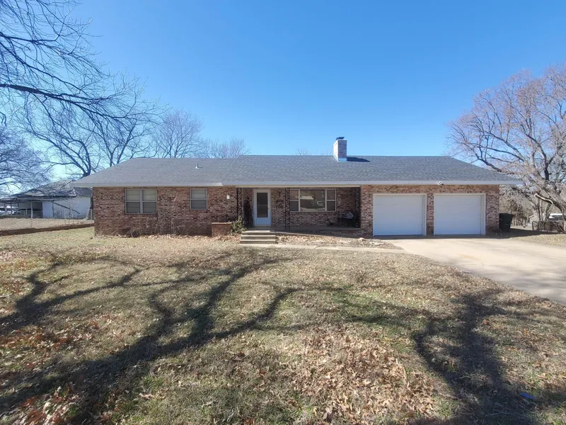This House is a Two Bedroom, Two Bath with Large living room, Dining room, kitchen, It has a Nice space adjacent to it for extra Dining or for office space. It has a large utility room with washer and dryer included. The attached two car garage has plenty of room for extra work space. this House sets on a extra large lot of 150 x 185 with two buildings for extra storage. Close to Town and Close To the school. This House wont last long. For a Private showing contact Mark Jones. 620-249-9305