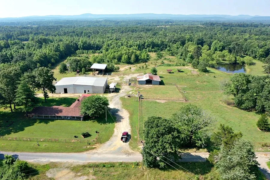 There is also a 40'X40' barn with stalls, tack room and power. There are, in addition, a 30'X60' shed and a 30'X40' shed, both on slabs. Pond on property. All on 15.85 acres. Mountain view, paved county road, RV hook up w/50 amp service, water & sewer. Fencing,.