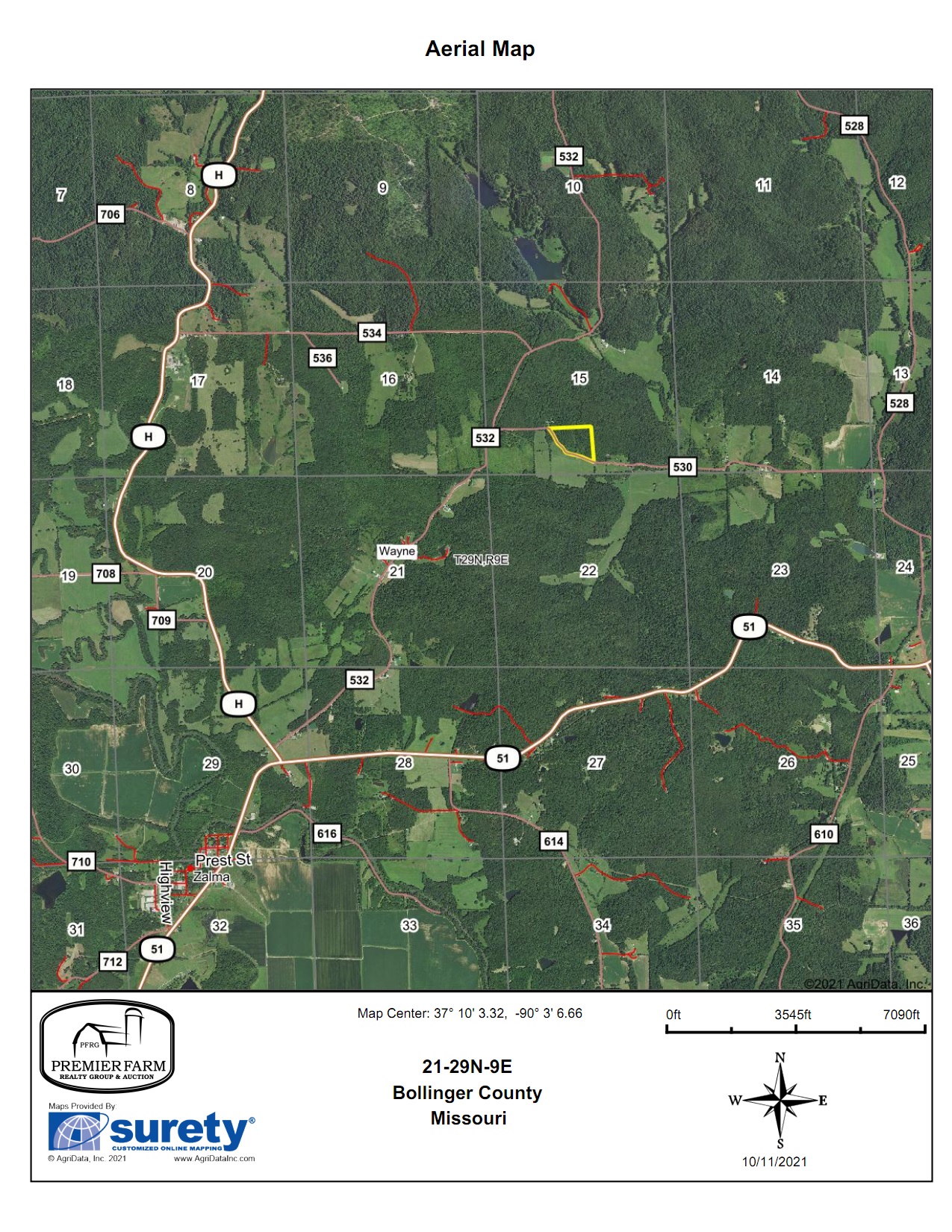 This property is tucked into the rolling hills of southern Bollinger County. Whether you are looking for a quiet spot to build your forever home or a place to get away with the family, this property checks all the boxes. With electric at the roadside and a well on site, there is no shortage of possibilities for this tract. A mixture of dense cover and mature timber creates exceptional turkey and whitetail hunting.