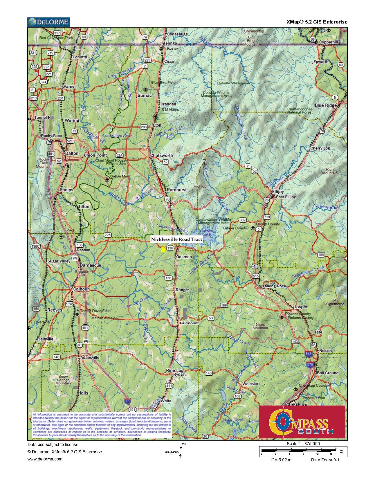 Nicklesville Road Tract is located in Gordon County just west of Carters Lake, between Talking Rock and Dalton. The tract is accessible from Nicklesville Road (two miles off of Hwy 411). Established internal roads allow for easy access to many portions of the property. The property has a large amount of timber available. Merchantable timber provides the opportunity for current income while the premerchantable timber has the opportunity to become future income for the buyer.