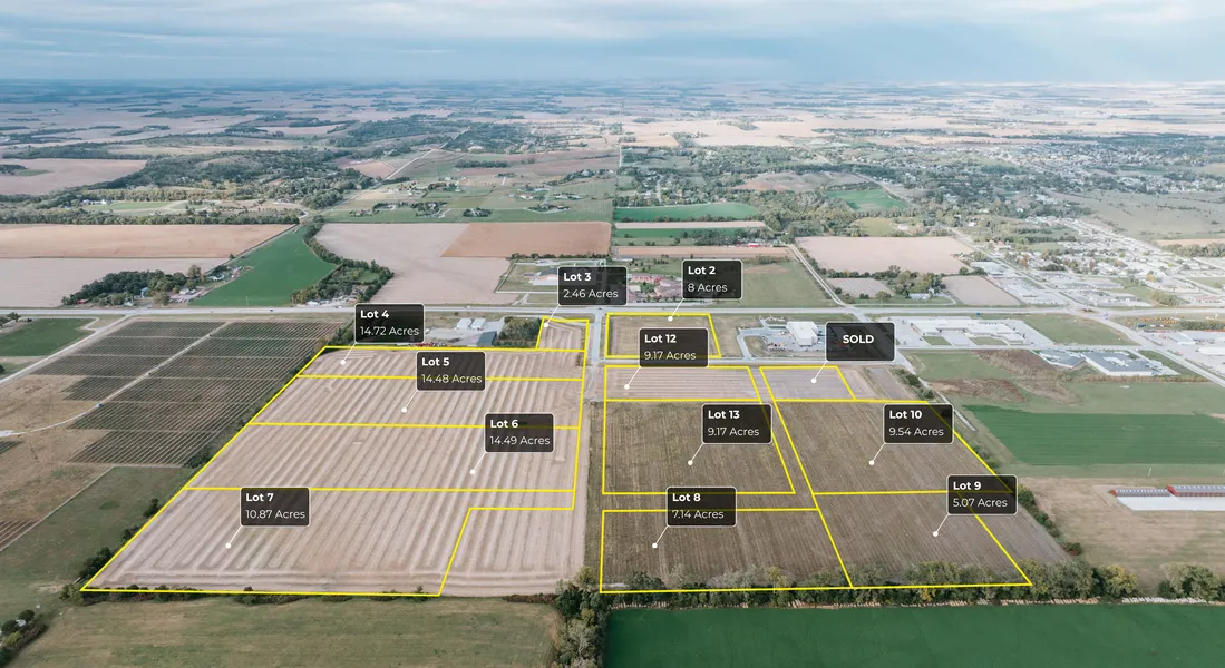 Highway 275 provides direct frontage on the North side of the property and excellent visibility for any operation, ensuring easy access and consistent traffic flow. A couple of lots have already been sold to reputable businesses reinforcing the parks appeal and long-term value.