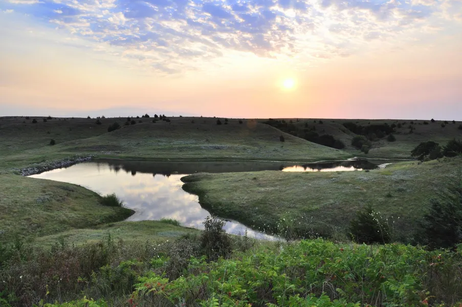 The north half of the property features a 2 1/2 acre pond surrounded by multiple draws which naturally feed the pond with water. These draws are loaded with cedars, cottonwoods, hackberries, and elms providing excellent cover for the trophy whitetail deer that occupy this area of the state. With Kill Creek only 1/2 mile to the west, there are sure to be some wall hanger whitetail bucks hanging out in the area.
