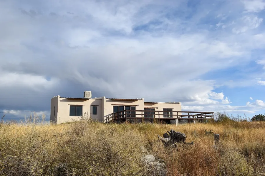 Built in 2014, of stucco over papercrete, the southwest style home has an open floor plan with three bedrooms, two baths and approximately 1,496 square feet of living space plus a two-car attached garage. Off the entry hall, a sunroom/sitting area with French doors leads out to the spacious rear deck overlooking the back acreage and mountains. A focal point of the living area is French doors and floor-to-ceiling windows which also open onto the rear deck. The kitchen features granite counters and soft close cabinets, and tile floors are found throughout. The sequestered master bedroom has two closets, with large storage...