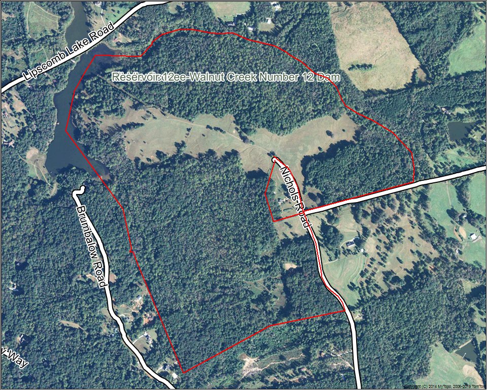 Property is located on a 40+ acre watershed Reservoir Lake (Walnut Creek Number 12 Dam). Subject property has over 2,500 feet of shoreline along the eastern