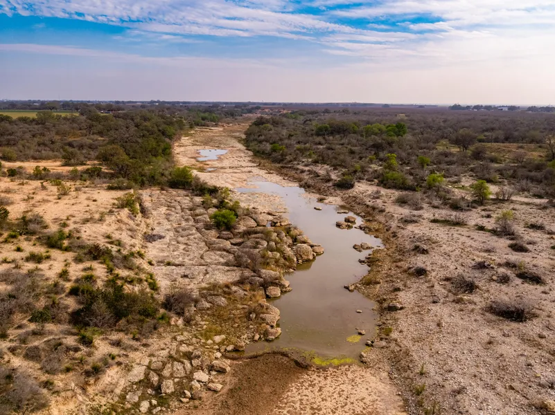 Almost a mile-and-a-half of frontage on wet weather Hondo Creek that meanders through the center of the ranch, with several areas of pooling water. There is also a one-acre pond on the property. The topography of the ranch is dramatic, ranging from level fields for planting and grazing to steep bluffs that have been carved into the creek bed.