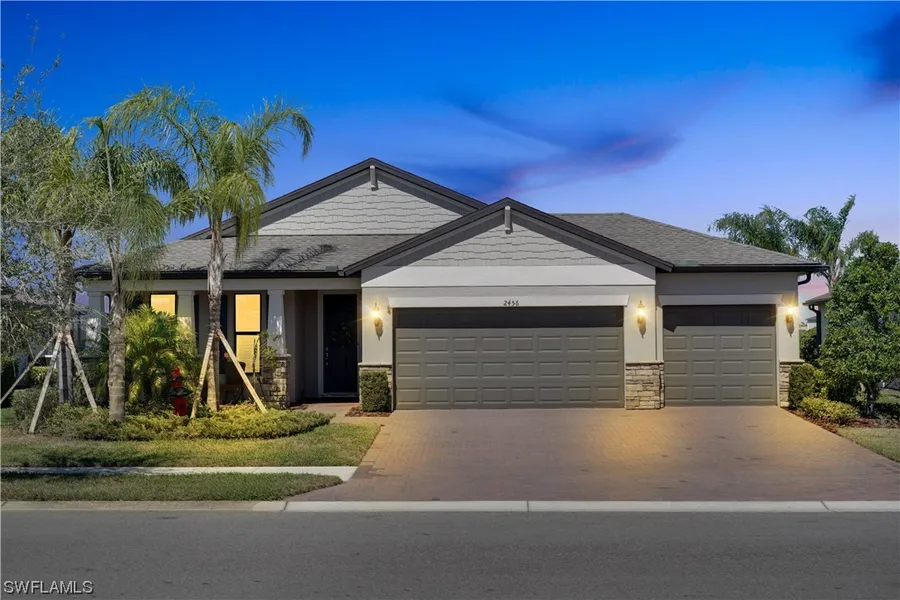 This appealing, well-appointed home located in Cedar Grove at the Woodlands has everything you are looking for in a home. This 4 bedroom, three bath, three car garage with a heated pool and above-ground Therapeutic Therma Spa is in ready to move in condition. The open floor concept expands into a beautiful view of the lake, where you can enjoy the wildlife every day. which includes ducks and Sandhill Cranes. The home is tiled with oversized tile and two of the bedrooms have luxury vinyl planking in place and two with tile. The kitchen has solid counters and ample cabinet space with staggered 42" uppers, crown molding, and a huge island. The home has 10' ceilings, 8' doors, and each bathroom in the home also has solid surface counters in place The owner added crown molding and plantation shutters to add an upgraded look to the home. There is also a paver drive, gutters, and irrigation. The lanai pool area has Storm Smart remote-controlled hurricane screens for added protection to the home. The roof was replaced in 2022, electric shutters in back lanai added 01/2022, and lanai re-screened in 11/2022. Home is located in an X Flood zone. Lane maintenance paid for in HOA fees.