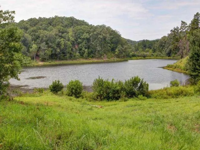Nice, rustic four room cabin overlooking a 12+/- acre private lake, 30+/- acre meadow and loud stream from large wrap around porch.