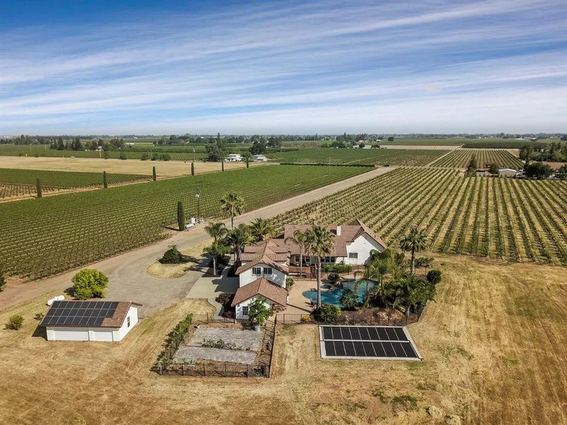 This estate is both a beautiful home and a secure business with enormous potential for expansion. Its meticulously designed, maintained, and remodeled sprawling custom house and matching buildings are nestled in one of the most-awarded vineyards in the Mokelumne River AVA, one of the Lodi AVAs seven sub-appellations. Sale will include Trademark Rights to the Vineyard name.