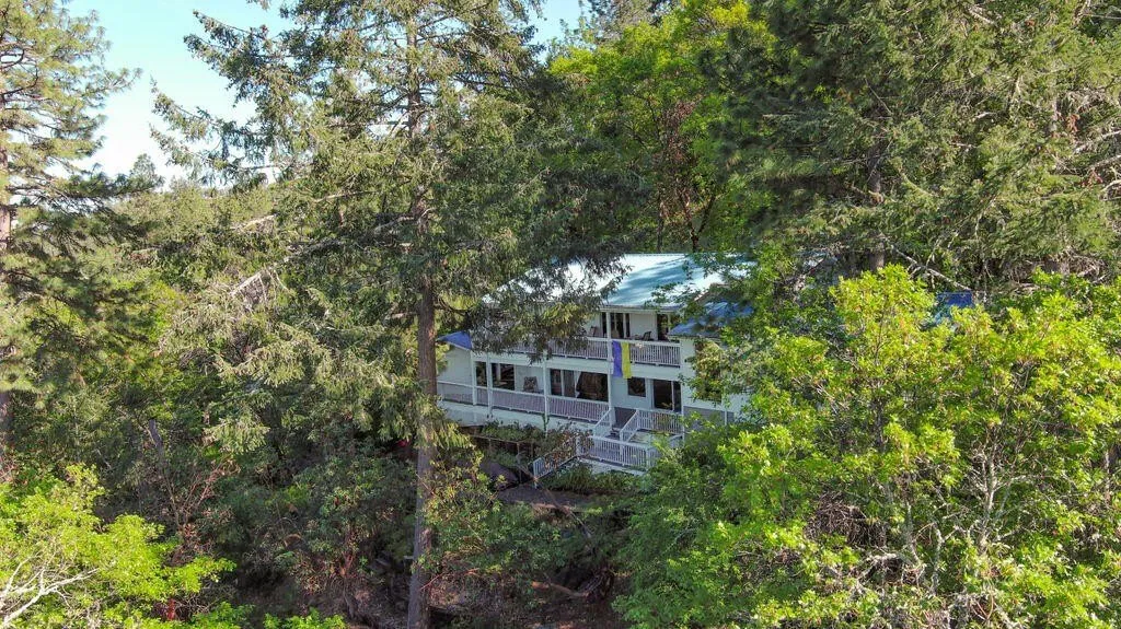 Views of the City lights and mountains beyond from this large lot in the heart of Jacksonville. Main living is all on one level w/ vaulted ceilings; 2 - floor to ceiling brick fireplaces; hardwood/tile/laminate floors; updated kitchen w/barn door, white cabinets & quartz counters; DBL ovens; gas 5 burner cook top stove; garden window, subway tile backsplash, dbl pane Pella Wood Windows w/ plantation shutters. Downstairs has family room w/open beams, wet bar, w/marble tile & wine room, 2 guest bedrooms updated bath w/tile floor, counter, round bathtub & shower. One guest bdrm has slider to deck w/water feature. 2 Lg covered patios w/stone paths; art studio/shop; fenced garden beds; Ensuite w/ vaulted ceilings, slider to deck, walk-in closet, updated bathrm w/tile floors; Lg office perfect for work from home. All paved driveway with pavers in the front of the house. Near hiking trails, do...