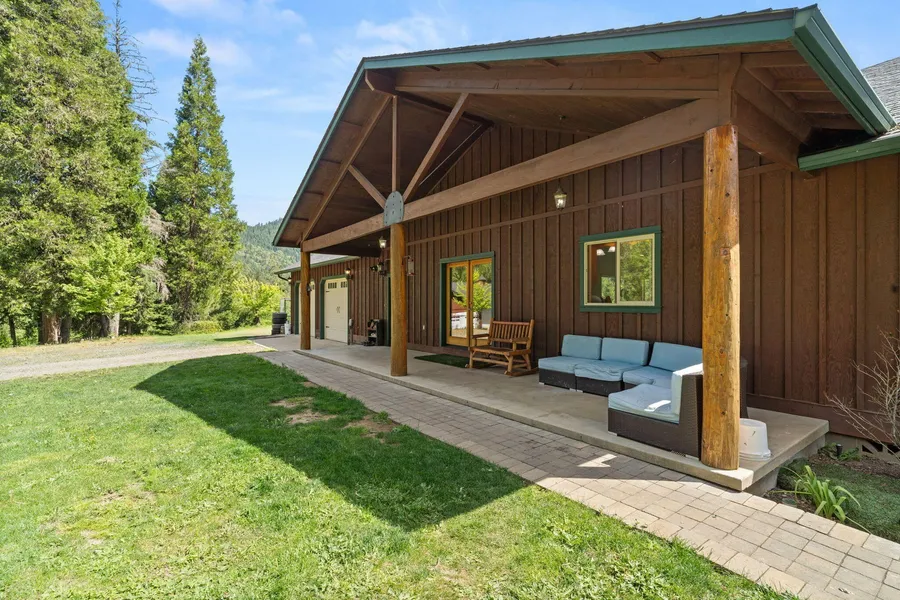Discover unparalleled country luxury on 50+/- private Oregon acres. This exceptional estate features fenced pastures, woodlands, year-round creek. The 2136 sq ft home, meticulously built in 2007, showcases luxurious hickory cabinets, abundant storage, well-appointed pantry, and a master suite featuring an elegant tiled walk-in shower. Enjoy hardwood, carpet, and tile floors, complemented by skylights, a majestic floor-to-ceiling rock hearth & French doors leading to expansive covered patios offering breathtaking mountain views. Additional amenities include oversized garage w/built-in storage, a 32x44 shop w/half bathroom, meticulously fenced garden areas & thriving fruit trees. Perfect for recreational enthusiasts! Indulge in activities such as ATV riding or horseback adventures, surrounded by abundant wildlife. Nestled in serene seclusion yet conveniently accessible to Grants Pass/Medfo...