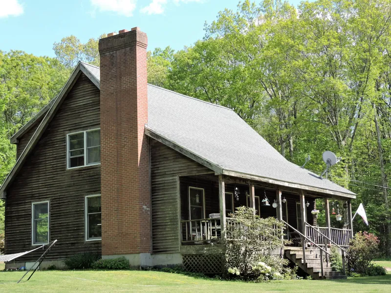 Attention homesteaders or those seeking absolute privacy. Set way back at the end of a dirt road on approx 20 acres of land is this rustic, cozy cape with inviting farmers porch. Property provides all the wood needed for wood burning furnace, heat your home for free! Small barn has room for 1-2 horses, additional run in shed and tack room. Old riding ring needs some work but all excavation has been done. Two car garage and 220 hook up for do-it-yourself projects and all the tools. Also includes walk up loft with tons of storage. Home is warm and cozy. Walk in from the outdoors to large mudroom with laundry and half bath. Dining room has slider that over looks horse paddock. Relax in front of the brick fireplace or out on you farmers porch with a west facing view and amazing sunsets. MBR has large walk in closet and overlooks property. There are trails throughout entire property for horse...