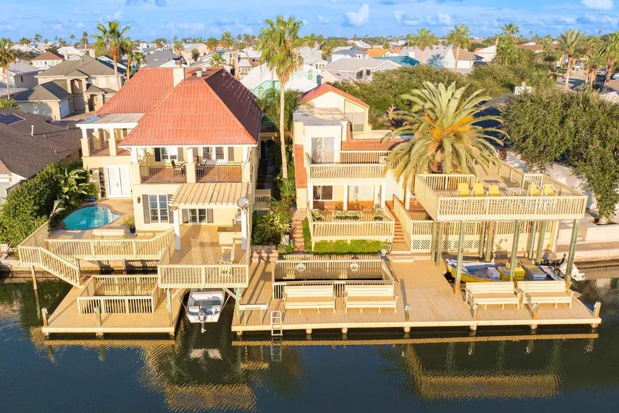 Situated on the beautiful Texas Gulf Coast, this exceptional property features two spacious, two-story homes, each thoughtfully designed for comfort and functionality. Both homes include primary bedroom suites on the ground floor, multiple sun decks, and private boat lifts. Mature landscaping and a private pool enhance the serene ambiance, creating an oasis of tranquility and elegance. With luxurious finishes and a blend of coastal charm and modern amenities, this property caters to discerning buyers. The larger home boasts a private pool and outdoor kitchen, perfect for entertainment, while the propertys boat lifts, fishing docks, and proximity to the Intracoastal Waterway and Laguna Madre Bay System offer unparalleled access to waterfront activities.
