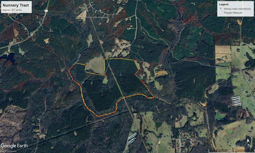 Undeniably one of the best recreational opportunities in Eastern Chester county. Extraordinarily private at the end of a dead end road with over 9,500 feet of frontage on Fishing Creek. Mature timber covers the majority of the property with several small wildlife food plots scattered throughout along with a 4 acre field that would make a prime dove field. A transmission line running through the tract offers a wildlife corridor in addition to tillable ground. The 1.5 acre pond is a perfect spot to spend an afternoon fishing and may aid in a possible duck impoundment. Approximately 40 acres of timber was harvested 1 year ago and is ready for clearing or reforestation. The Nunnery tract packs it all into a 325 acre tract 1 hour from Charlotte or Columbia.