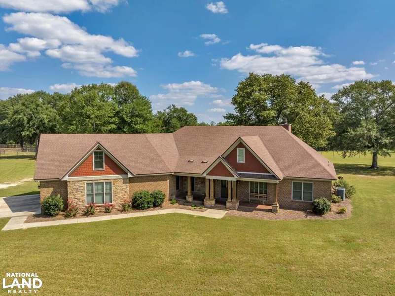 Custom brick built home on 90 acres. Upgrades throughout. 4 bedroom split plan with 3.5 baths, custom hand-picked granite counter tops, clear cedar domed ceiling in entryway, and clear cedar cathedral ceiling in great room with 2 story stone remove start gas / wood fireplace with river honed cedar mantel. Gourmet kitchen. Induction stove, warmer, and ice maker. Countertop space for days. Formal dining room with coffered ceiling. Separate office with French glass doors. Ceramic wood styling flooring on first floor with Ditra Membrane. Oversized master suite with roll-in tile shower and six (6) foot soaker tub with cathedral ceiling. His and Hers walk-in closets. Foam insulation to include oversized insulated garage doors. 44 x 72 barn with tool room, insulated tack room, and stalls all on concrete slab. 40 x 40 pole barn with RV power on slab. Natural springs for pond. Highest point in Taylor County. Incredible sunsets with turkey and deer galore! Summer wedding held on property June 2023. Contact Travis Chaffin at 706/302-8198 for more information.