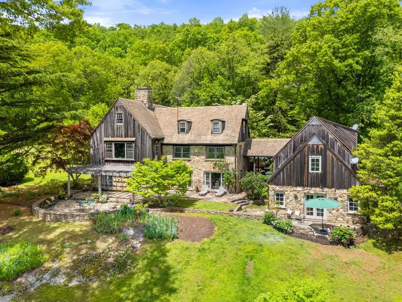 Oak Ridge Farm. In its unique, spectacular location, Oak Ridge Farm offers extensive mountains views and privacy. The renovated stone and cedar main house on 54 acres features stunning views of the open countryside and the Cobbler Mountains, a main floor primary bedroom suite, heart of pine floors, over 35 windows, radiant stone floors, wood burning fireplaces, custom built-in bookshelves and stone terraces. There are 4 bedrooms and 4.5 baths along with a wonderful mix of formal and casual spaces. Enjoy a formal dining room, a living room with 13' ceilings, a cozy library, a family room, light-filled breakfast room and a renovated gourmet kitchen. The property includes a 2-car garage with storage above, along with a separate home office or studio with a kitchenette, full bath and a private terrace. There is a pool house with a swimming pool (as is), an equipment shed, two fenced pastures...