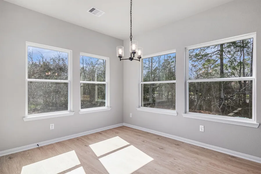 Welcome to Oakwood Ranch, offering limited homesites and spacious living! This stunning one-story home features 4 bedrooms, 2 baths, and a 2-car garage, all on nearly an acre. The charming exterior includes a covered front porch with brick, stone, cedar gable, and shutters. Inside, enjoy laminate wood floors (carpet in bedrooms) and a chef's kitchen with granite countertops, designer backsplash, GE Slate appliances, 42" white cabinets, and a 9-ft island open to the family room. The owner's retreat offers his-and-her closets, dual sinks, a garden tub, and a sunken shower. Situated on just under an acre lot is perfect for a shop, boat, RV, or trailer. Additional features include structured wiring, USB outlets, front gutters, a sprinkler system, and propane. Conveniently located in Willis ISD with low taxes, just 10 minutes from Hwy 45 and Lake Conroe. Don’t miss your chance—call today!