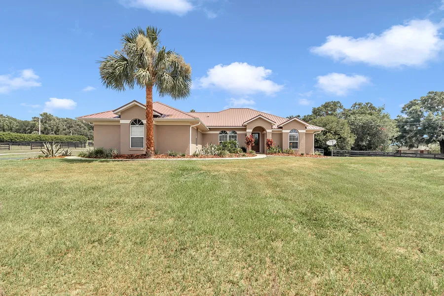 The phrase “good things come in small packages” describes this amazing property. Only 6 miles from WEC off 225A and easy access to Interstate 75, this 5-plus-acre property is one of the most thoughtfully designed and well utilized acreage out there. The house and barn have been freshly repainted. Several upgrades throughout the home and barn, including new light fixtures and doors. A manageable size, with new four-board fencing and beautiful landscaping, this farm is move-in ready. The three-bedroom, two-bath furnished block pool home is updated throughout, and everything is practically new. The residence is freshly painted, new baseboards, new window treatments, completely remodeled primary bath and quartz countertops in the kitchen. There is a large dog run off the lanai. The beautiful concrete center aisle block barn, which matches the home, has 13 stalls with rubber mats, and is also complete with a studio apartment with a full bath, a tack room, feed room, designated laundry room with washer and dryer included, a wash stall, RV hookup with electric and water, and loads of extra room for storage, equipment or a workshop. Ideal location for all equestrian venues and within hacking distance to County Park furnished with riding trails! This property is such a wonderful mini farm.
